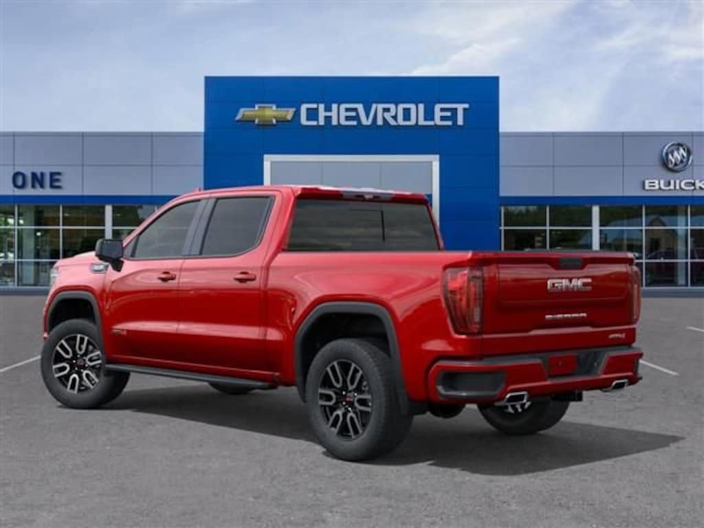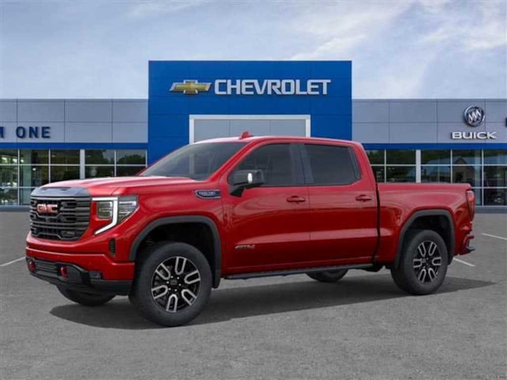Volcanic Red 2026 GMC Sierra 1500 AT4 4WD 10-Speed Automatic EcoTec3 6.2L V8 10-Speed Automatic, 4WD, Black Leather.