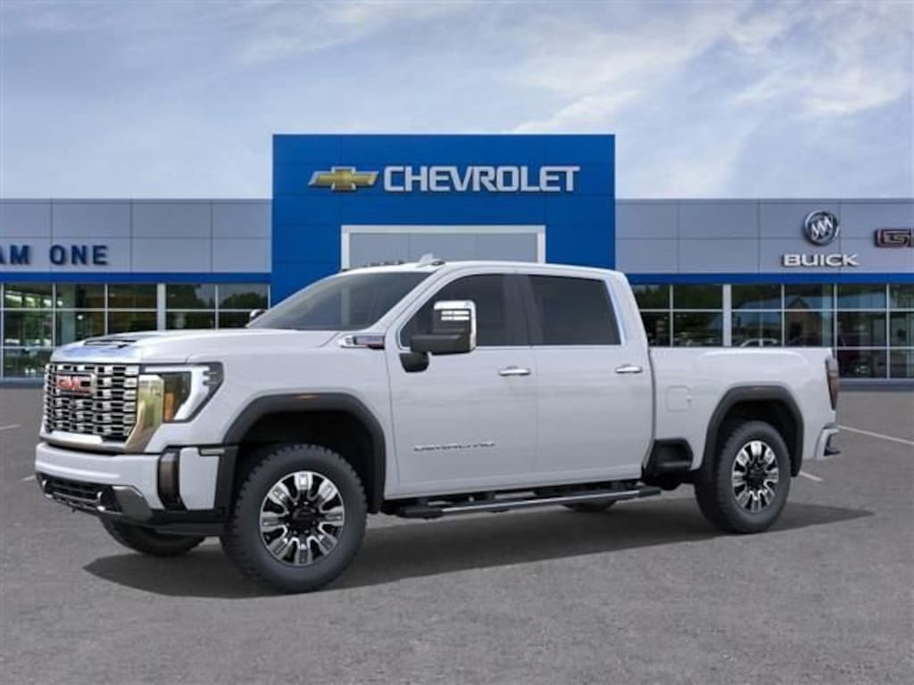 Glacier White 2026 GMC Sierra 2500HD Denali 4WD 10-Speed Automatic Duramax 6.6L V8 Turbodiesel 10-Speed Automatic, 4WD, Atmosphere/Brow Leather.